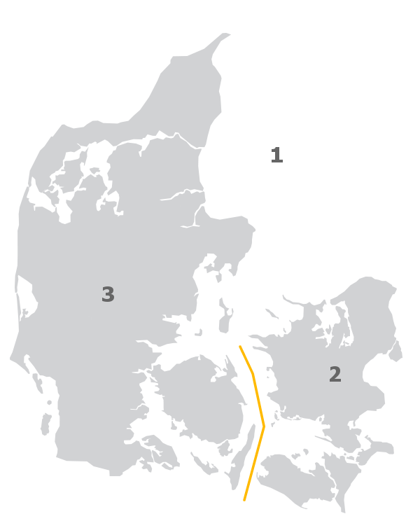 3) Jylland og Fyn (Vest for Storebælt)